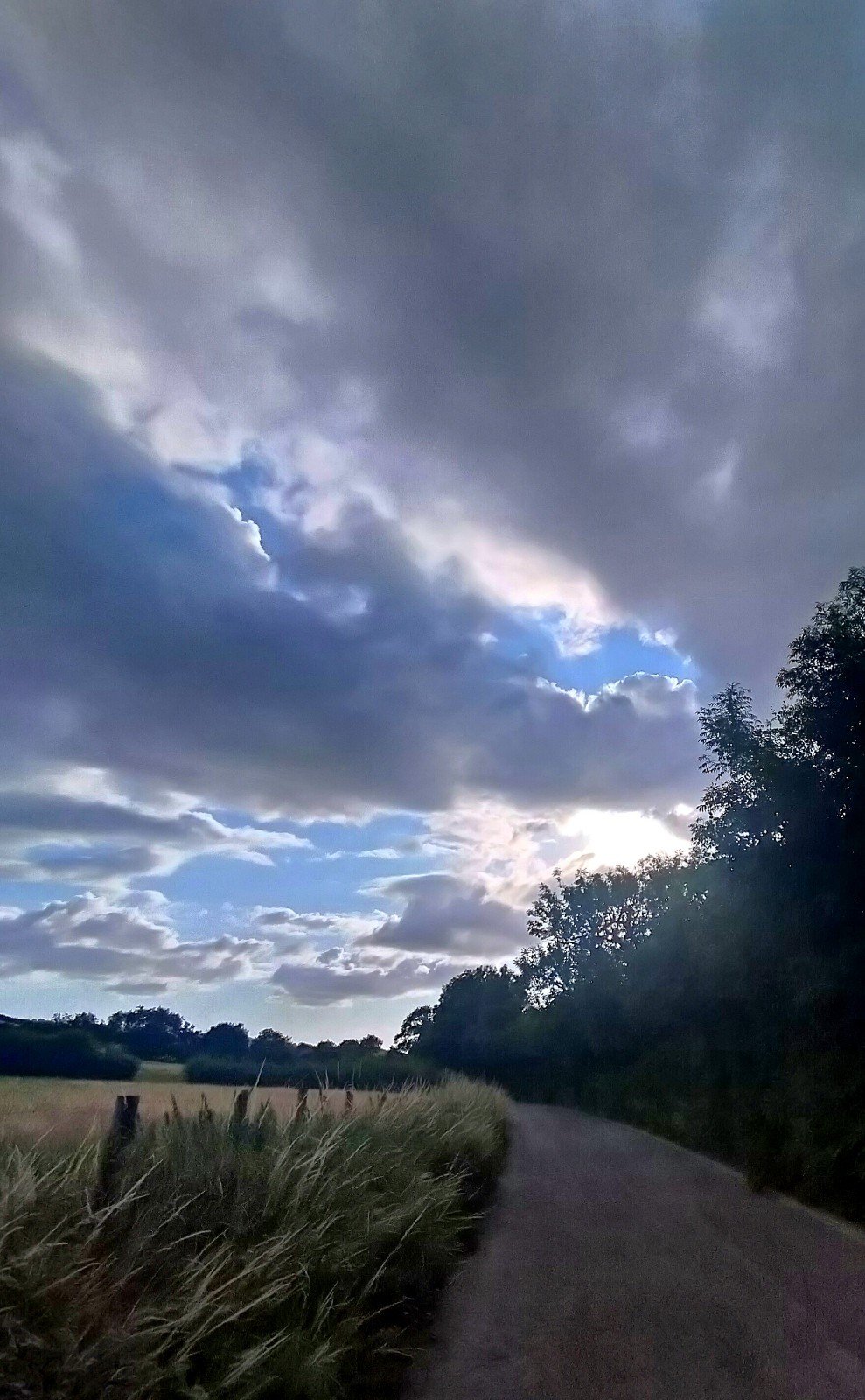 Needless to say, my plans changed and I instead present pictures of; the bizarre purple clouds over the castle mound immediately prior to a new downpour, silhouettes and shadows cast by renovation scaffolding in the covered pannier market where I sheltered from the elements, and some trees against the finally blue sky yesterday evening.