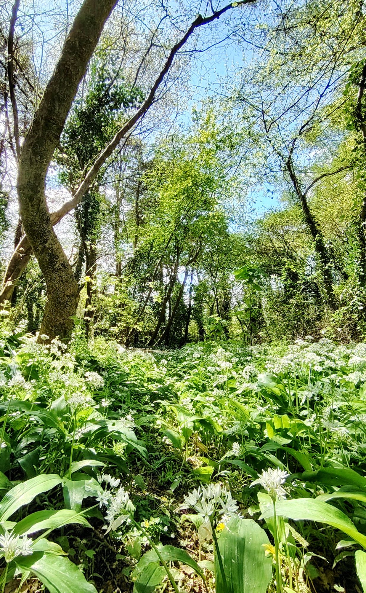 It was a gloriously sunny weekend, so yesterday I dragged myself away from a cold cider in the garden long enough for a walk in the local woods. Wild garlic was in full bloom, carpeting the ground in dappled shade from vivid green beech and sycamore trees, the sound of a stream completing the peaceful scene perfectly.