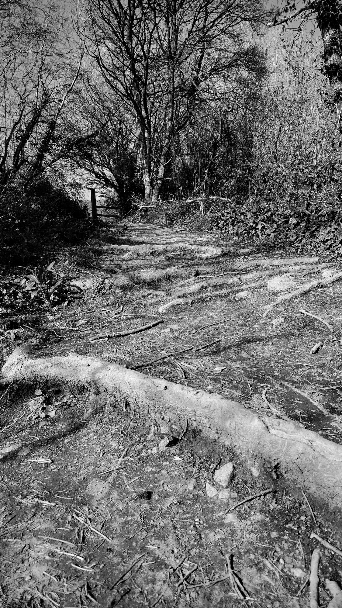 I love trails through the woods with a river nearby. I especially liked the photo of that large tree acting like a kind of bridge over the river.