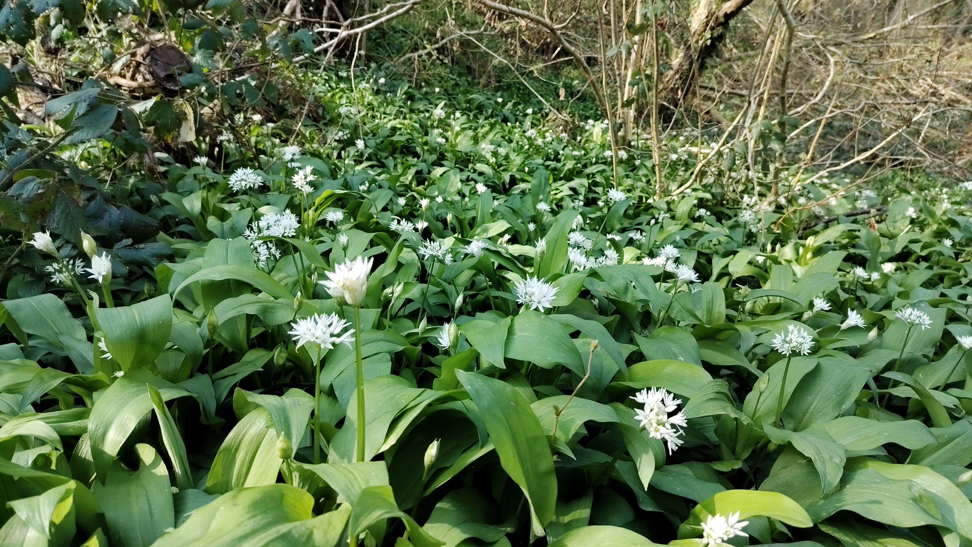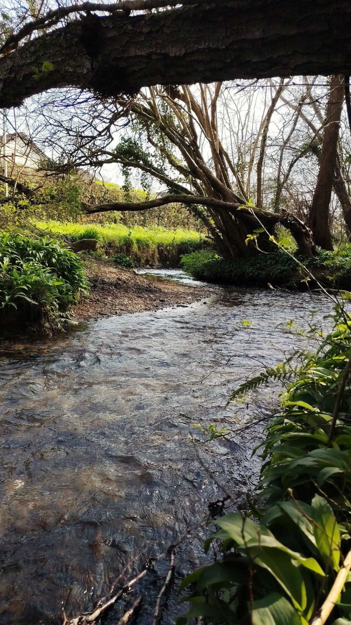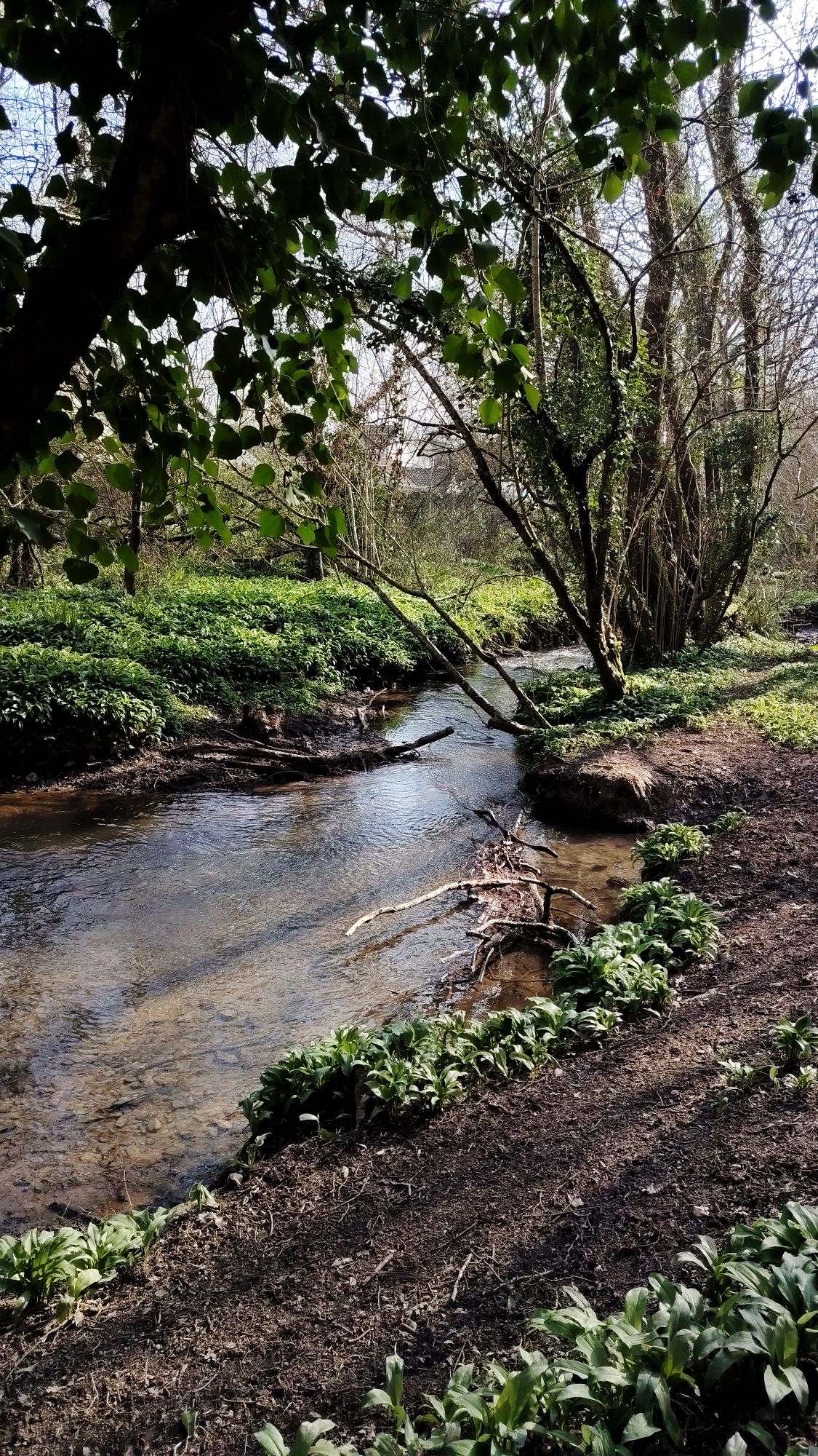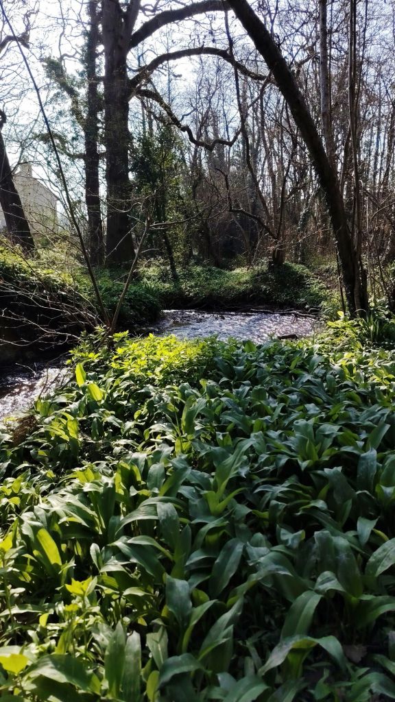 I took a walk around the communal woodland which runs through my neighborhood, where a stream (the delightfully named “Coney Gut”, a tributary of the River Taw) winds its way amongst the wild garlic and wood anemones.