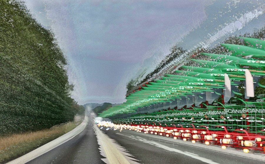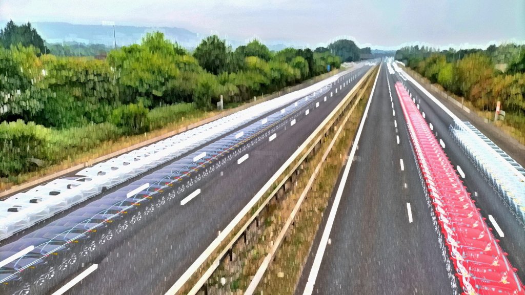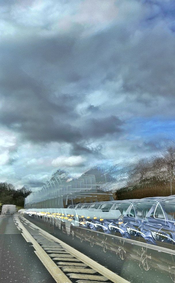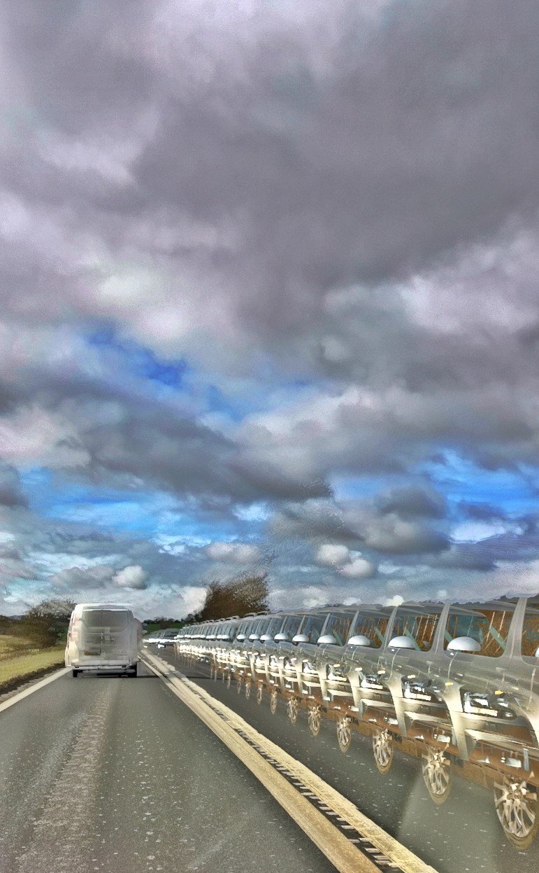 Just because I could, I shot a timelapse video of the return journey, shrinking the 20 minute drive down to 35 seconds. This worked fine, but it was very fast and I decided to slow it down with one of my video editing apps, which I noticed had a new “smooth slo-mo” button and I do love a gadget, so…well, of course I tried it.